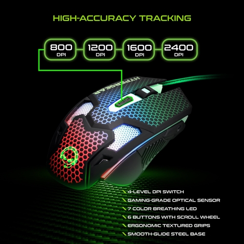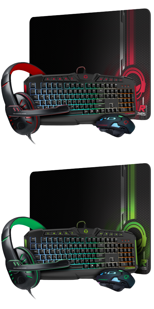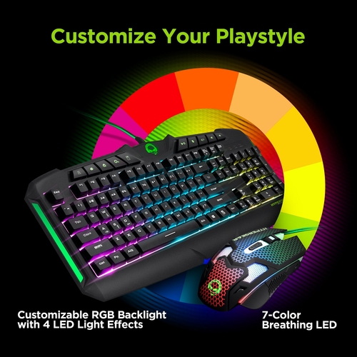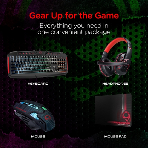 This 4-in-1 Gaming Kit has everything you need in one convenient package, without breaking the bank. It includes one full-sized RGB customizable backlit keyboard, an ergonomic 6-button RGB backlit scroll-wheel mouse, 40mm surround sound stereo headphones, and a large flexible gaming mousepad. Each component is durably built for daily use and extended gaming sessions. No need to install drivers either, everything is ready to plug and play right out of the box! Gear up for the game!